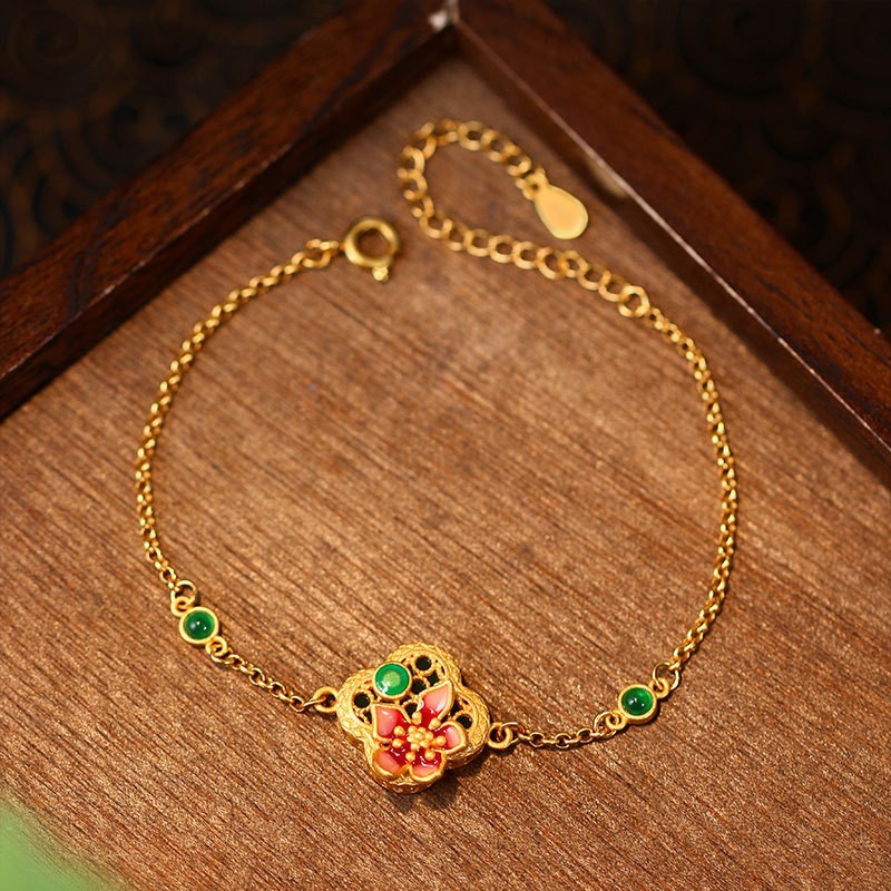 Round bead peach heart bracelet & necklace